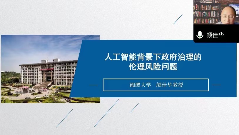 5月21日上午,应政治与公共管理学院邀请,教育部公共管理类教指委委员、湘潭大学颜佳华教授在线上为学院师生作了题为《人工智能背景下政府治理的伦理风险问题》的学术报告,报告由学院副院长王鹤亭教授主持,相关专业教师、研究生、本科生参与学习。