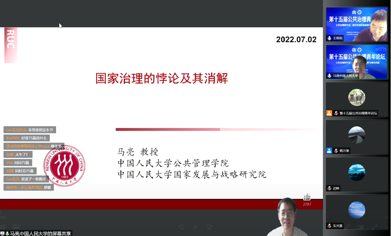 7月2日上午,应政治与公共管理学院邀请,中国人民大学公共管理学院马亮教授在线上为学院师生作了题为《国家治理的悖论及其消解》的学术报告,报告由山东大学王佃利教授主持,校内外1300余名师生参与。