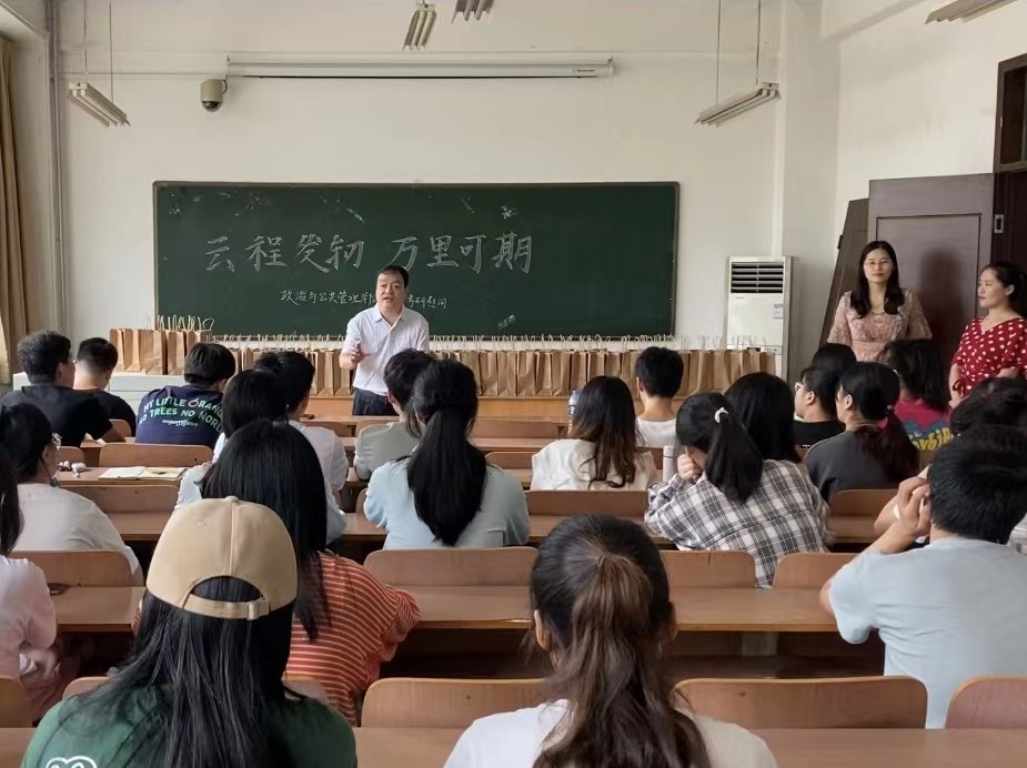 为做好疫情防控常态化背景下暑期留校学生的管理和服务工作,激励留校学生认真备考。7月18日下午,政治与公共管理学院于政管楼217室举办了以“云程发轫,万里可期”为主题的暑期留校考研学生慰问活动,院党委书记赵红杰、院党委副书记张瑾、2019级辅导员孙琳娜及70余名留校考研学生参加。