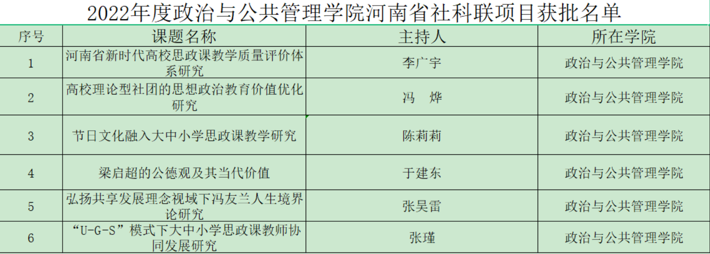 近日,经专家评委会评审,河南省社会科学界联合会发布《2022年度河南省社会科学界联合会调研课题立项通知》,我院六位老师申报的项目获批立项。