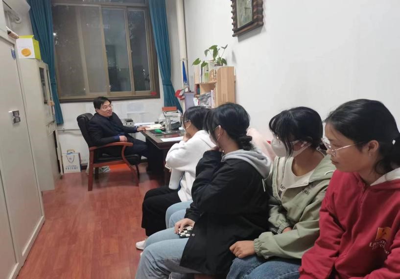 在交流过程中,刘科详细询问每位学生的学习情况、考研意向,根据不同学生的情况进行了针对性指导。他提出,当前应根据自身学习情况、各大高校招生情况、未来发展意向以及自己的兴趣爱好尽早确定未来考研的方向,提早准备,打下扎实的基础,并强调现在人才选拔对外语水平要求逐步提升,在夯实专业基础的同时,也要注重外语能力的提升。同时,提醒学生注重培养健康生活习惯,在疫情常态化的背景下,做好个人防护,为努力学习奠定物质基础。活动结束后,学生纷纷表示深切感受到了领导老师对同学们的关心与帮助,会根据老师的指导进一步明晰考研方向,并为之不懈奋斗,努力实现自己的梦想。