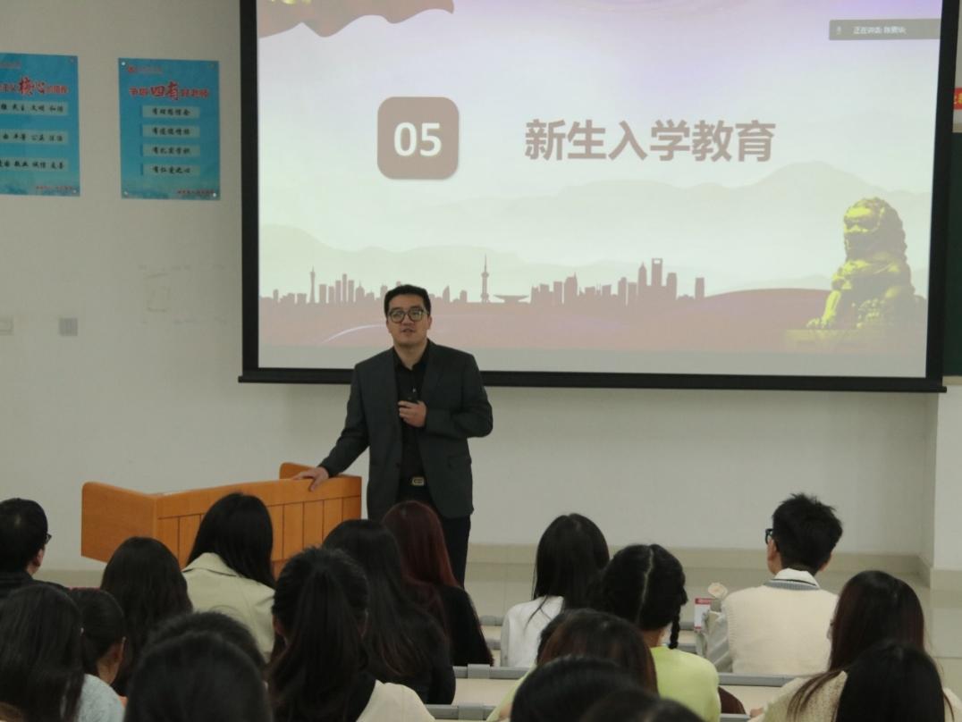 典礼尾声,研究生辅导员马文韬作新生入学教育,他向同学们提出了“严守疫情防控底线”、“注重安全健康”、“提升文明素养”和“遵守校规校纪”四个方面的要求,并希望同学们在研究生时光中不断寻找新方向,收获一段充实而有意义的研究生生活。