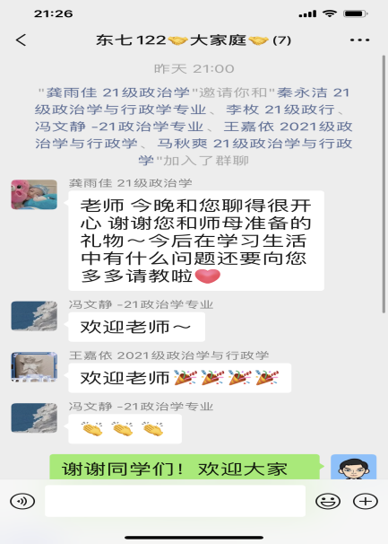 疫情防控期间,学生管理服务工作负担加重。如何保障学院近两千名学生在校园内安心学习和健康生活,成为了老师们高度关心的话题。为此,学院全面落实党员干部联系宿舍制度,做到师生联系全覆盖,教职工主动对接联系宿舍,关心学生日常生活,反映学生困难情况。“同学们线上学习状态怎么样?四六级考试过了吗?天冷了有没有穿厚衣服?”一句句问候,一个个回答,拉近师生距离,增进师生感情,彰显了老师对学生真挚的关切,温暖了学生的心田。