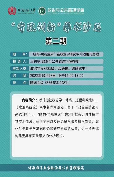 为做到“停课不停学”,学院采取多项措施,保障教学科研工作正常开展。线上教学期间,学院教学指导委员会规划课程安排,调整教学进度,指导教师提升教学技能,加强教学督导,反馈学生听课效果,确保线上授课正常有序开展。为提升研究生学术氛围,学院学术委员会牵头开展学术沙龙,开拓学生学术视野。“守政创新”学术沙龙、“思政名师”大讲堂、“牧野哲思”学术沙龙等依靠学院学科优势,邀请校内外名师定期开展学术讲座,为师生提供丰富的“学术大餐”。