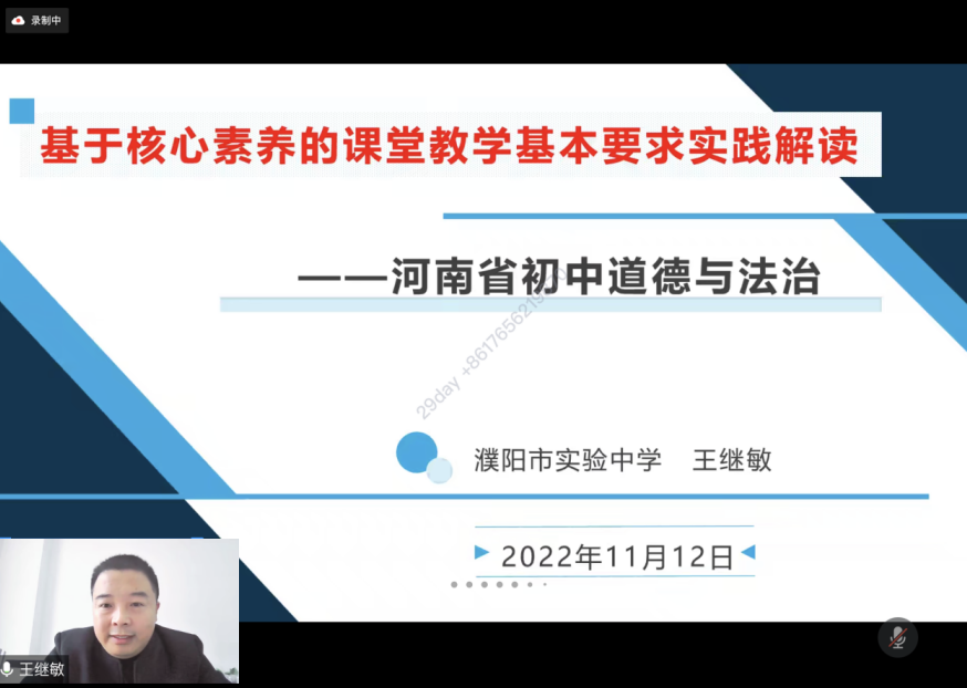 11月12日下午,政治与公共管理学院举办第三期思政名师大讲堂。本期邀请河南省教学名师、中小学正高级教师、濮阳市实验中学教师王继敏在“腾讯会议”上作题为《基于核心素养的初中道德与法治课堂教学基本要求的实践解读》的报告。学院相关专业教师、研究生、本科生等160余人参与。于建东副教授担任主持人。
