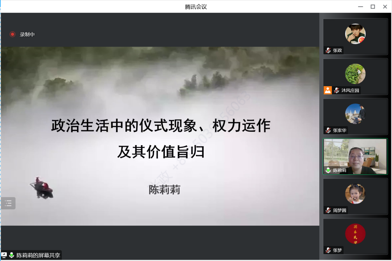 12月9日下午,政治与公共管理学院政治学重点学科第六期“守政创新”学术沙龙在腾讯会议上举行,本期沙龙邀请学科成员陈莉莉副教授作了题为《政治生活中的仪式现象、权力运作及其价值旨归》的学术报告,学院相关专业教师、研究生、本科生等60余人参与。艾昆鹏副教授担任主持人