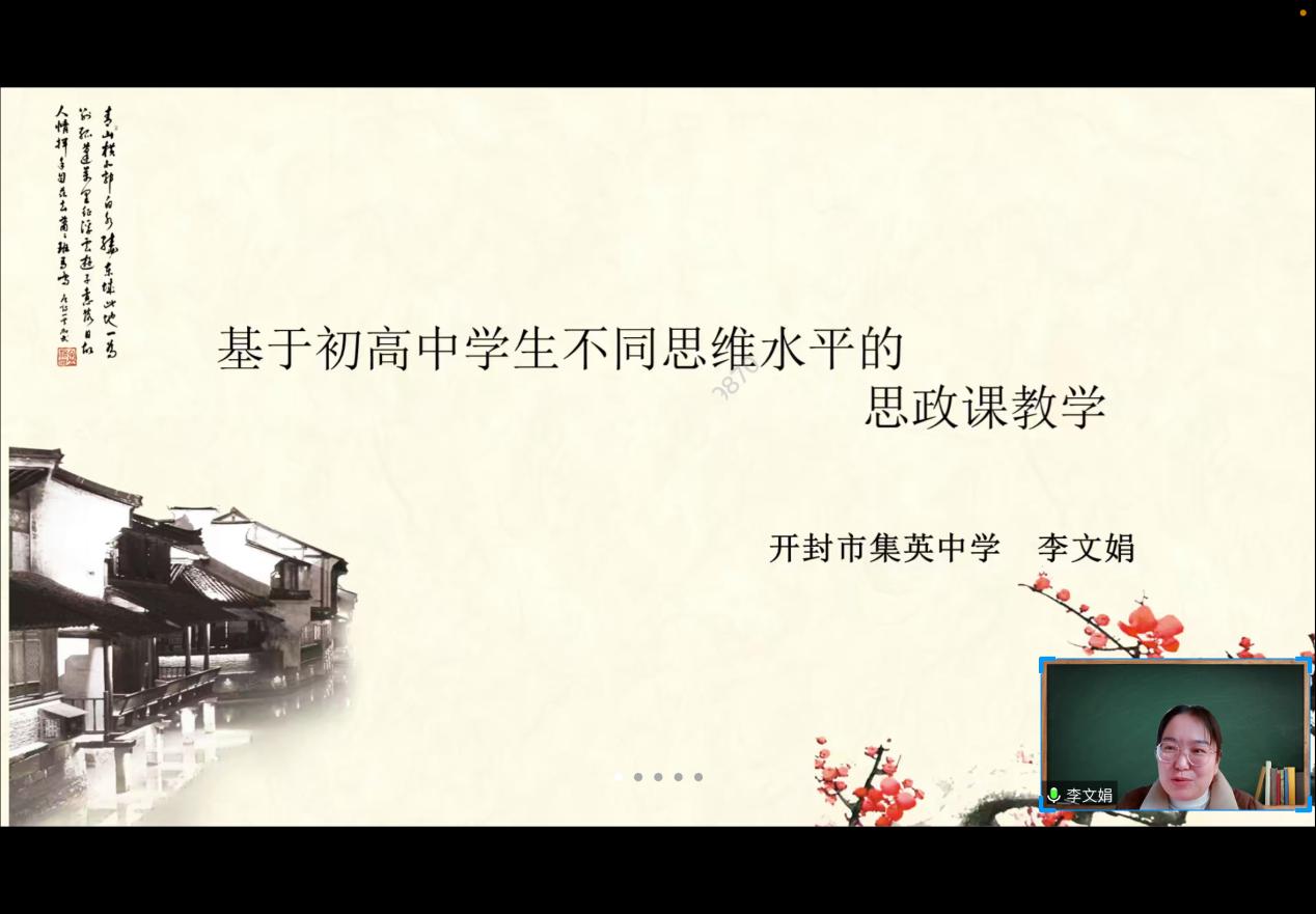 围绕报告主题,李文娟首先通过初高中课程标准、核心素养等分析了初高中学生思维的差异,并结合皮亚杰认知发展理论以及中高考试题总结了初高中学生思维特点。其次,她以《伟大的改革开放》等具体课例为例,详细介绍了初高中课标内容和学习要求的变化以及教师呈现方式的不同。最后,她提出提升学生思维能力的五个方法,即阅读教材、思维导图、活用试题、时政分析以及重视实践,并认为教师的专业成长在于研教材、研课标、研学生以及研自已。