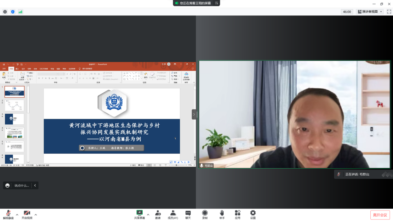 此次中期答辩分为PPT展示和专家提问两个环节,参与答辩的九组项目负责人分别对项目已开展情况、已取得成果、遇到的困难等方面进行重点汇报。其中,2020级公共事业管理专业学生刘振鹏进行了题为“农村‘数字弱势群体’帮扶难题与优化路径”的汇报。在答辩环节中,毛哲山提出项目搜集的帮扶政策过于宏观,无法体现与农村的具体联系,希望其可以着眼于农村与城市的差异,更加凸显农村特色。2020级国际政治专业学生孙晨馨以“七彩画乡”小屯村案例为切入点,汇报了“乡村振兴背景下PPP模式助力乡村文旅产业发展的问题与路径研究——基于辉县小屯村的调研项目”。徐晓攀肯定了项目的选题角度,并对下一步调研路径与方法进行优化调整。