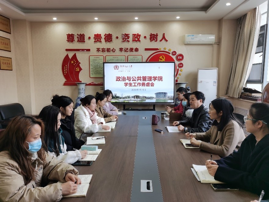 2月15日下午,我院于办公楼214室召开学生工作务虚会,我院党委书记赵红杰、副书记张瑾及各年级专兼职辅导员参加会议。