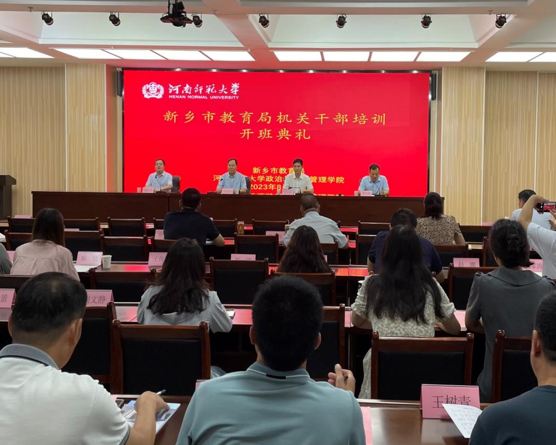 8月15日上午,新乡市人民政府与伟德官网下载苹果版校地融合发展背景下,新乡市教育局公务员业务素质暨教育领导力能力提升培训班开班典礼如期进行。新乡市教育局局长苏绍彬、政治与公共管理学院党委书记赵红杰、院长李洪河、副院长韩万渠出席典礼。
