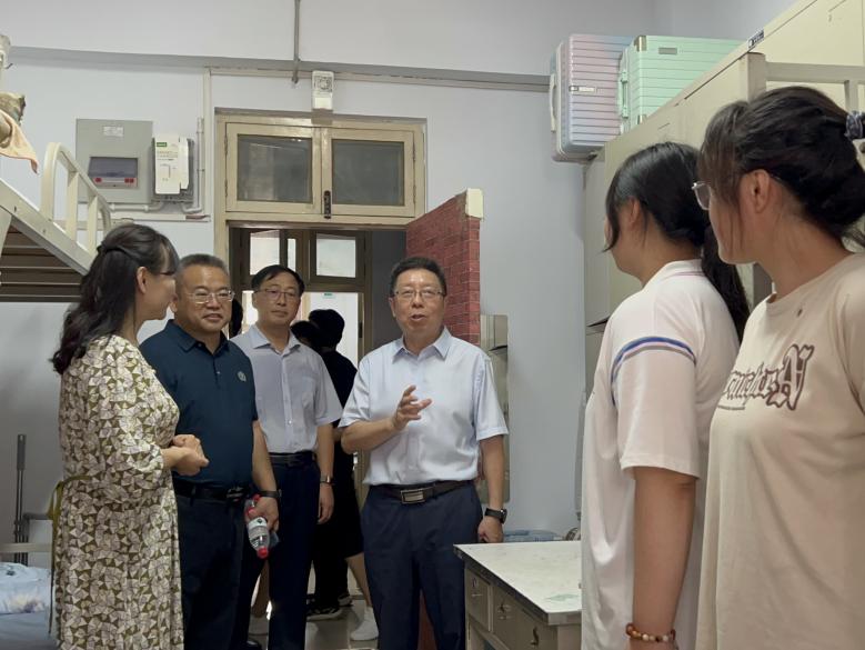 随后,校领导一行前往东寓8号楼看望已到校的2023级新生。在交流过程中,马治军表示,大学期间是学生最佳的“拔节孕穗”期,是提高自身修养、提升报国本领的关键时期,大家要多读书、多学习,在夯实专业基础的同时,确定人生目标,并为之不懈奋斗。