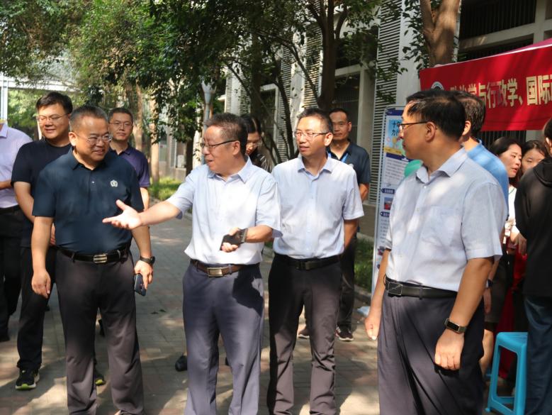 为指导迎新工作顺利开展,了解新生入校报到情况,9月9日上午,校党委副书记、工会主席马治军,党委常委、纪委书记 、监察专员王玉良,党委常委、副校长聂国兴,副校长秦法跃及学校相关职能部门负责人,在学院院长李洪河、党委副书记张瑾的陪同下到我院迎新摊位指导工作。