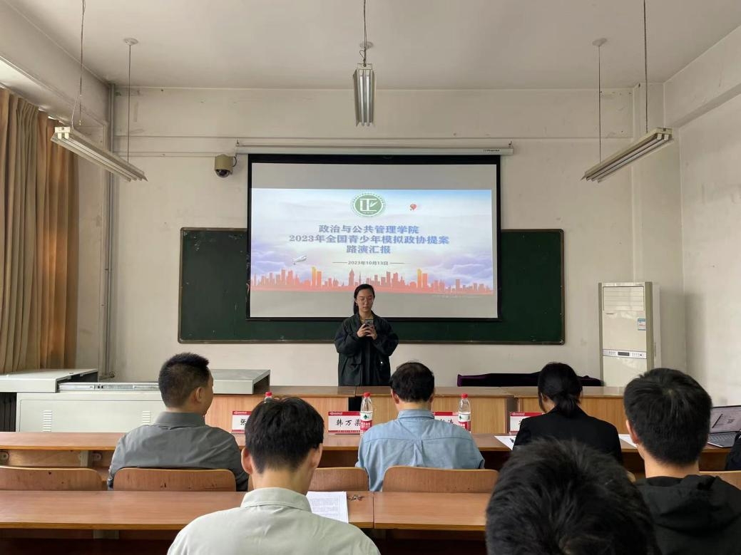 为助力我院学生更好地参加青少年模拟政协提案征集活动,提升提案作品质量,10月13日下午,我院于学院217室开展2023年青少年模拟政协提案路演汇报活动。学院副院长韩万渠,学院教师张书涛、张立国、孙立新及参赛选手参与其中。