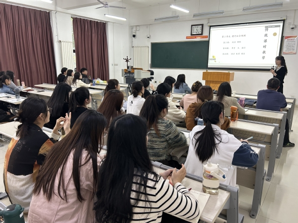 讲堂伊始,梁淑青立足于新版的《道德与法治课程标准》,通过对传统课时教学弊端的分析,向大家讲述了单元整体教学的特点,并利用微型课向大家解释了合作探究、启发式教学、情感升华等教学方法的使用,以及如何从过程性评价和作业评价两方面进行学习评价,引导大家重视对教材资源的研究与利用,使大家直观感受到单元整体教学的思维逻辑和授课魅力。随后,她通过对复习课和时政专题复习课的教学展示,使大家对教学设计分析以及单元整体教学设计的策略有了更加深入地了解和认识。最后,她向大家谈论了自己对单元整体教学实践的认识,并希望学科教学(思政)专业学生关注主流价值媒体的时政新闻,提高自己的学科素养,做好成长规划,以更加饱满的热情投入到思政教育事业中。活动过程中,梁淑青积极与在场学生进行互动,现场氛围轻松活跃,与会师生纷纷表示受益匪浅。