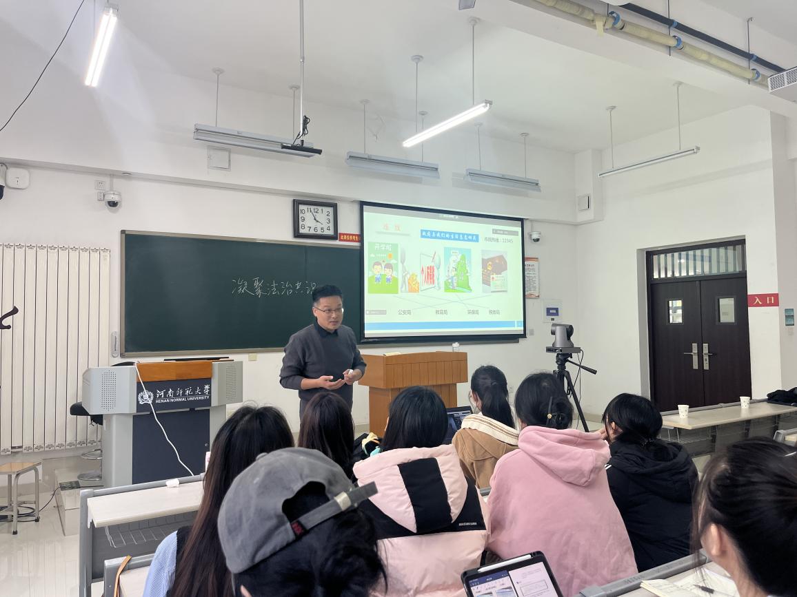 11月18日下午,政治与公共管理学院第二届思政名师大讲堂第五期在文昌楼213举行。本期讲堂邀请河南省骨干教师、新乡市基础教育教研专家、新乡市优秀思政教育工作者周晋阳老师作题为《道德与法治教材解析及教法指导(九年级)》的学术讲座,学院副教授田甲乐担任会议主持人,相关专业教师、学院师生线上线下积极参加。