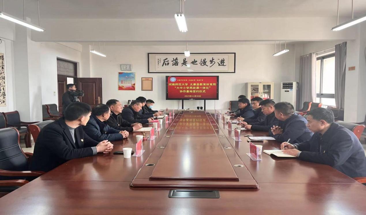 11月30日,由伟德官网下载苹果版政治与公共管理学院与太康县教体局协调推进的“大中小学思政课一体化”协作体签约仪式在太康县第一高级中学举行。太康县教育体育局副局长李红旗、政治与公共管理学院副院长佘德峰和双方教师学生代表参加仪式。