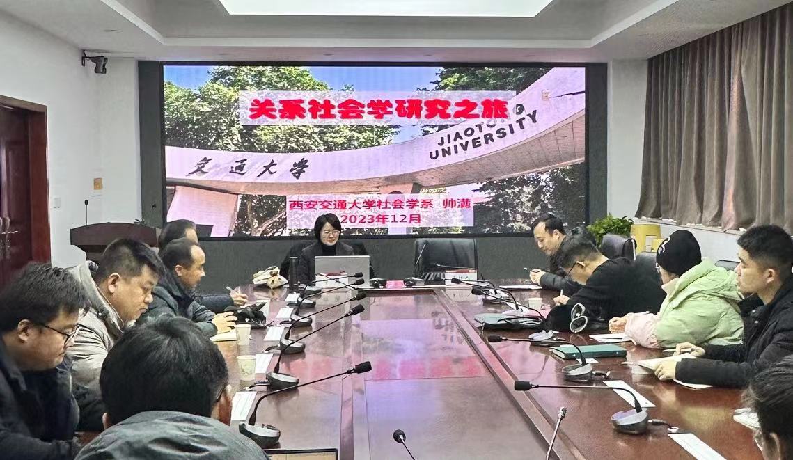 12月26日上午,应政治与公共管理学院邀请,西安交通大学社会学系长聘副教授帅满为学院师生作了题为《关系社会学研究之旅》的学术讲座。学院相关专业教师、研究生和本科生参与。报告由学院副院长韩万渠教授主持。