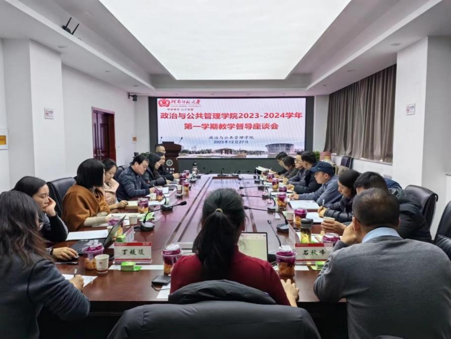 为充分发挥教学督导对课堂教学把脉问诊的功能,切实助力提升学院教学质量,12月27日下午,我院在学院517会议室召开2023-2024学年第一学期教学督导座谈会。教务处副处长姜玉钦、校级教学督导牛向阳、薛君、朱秀芹、王海琴,学院党委书记赵红杰、党委副书记张瑾、副院长原晶晶、同行督导、教学秘书和教务员参加会议。座谈会由原晶晶主持。