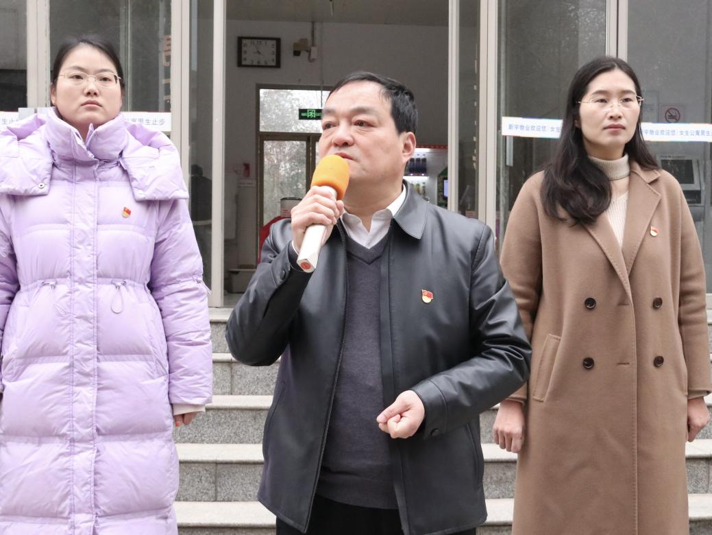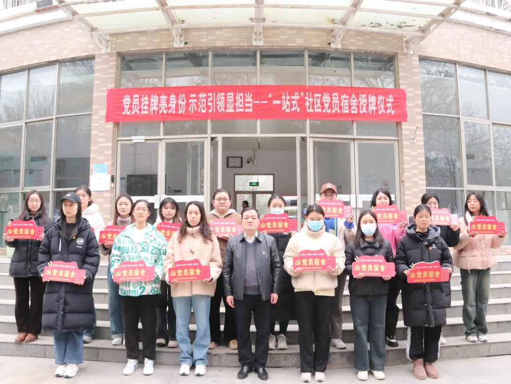 为进一步发挥学生党员的先锋模范作用,助推学校“一站式”学生社区规范化建设,3月4日上午,我院于东寓七号楼前举办“党员挂牌亮身份,示范引领促担当”——“一站式”社区党员宿舍授牌仪式。院领导班子、各年级党支部书记、社区内全体学生党员参与了本次授牌仪式。本次活动由我院团委书记张成功主持。