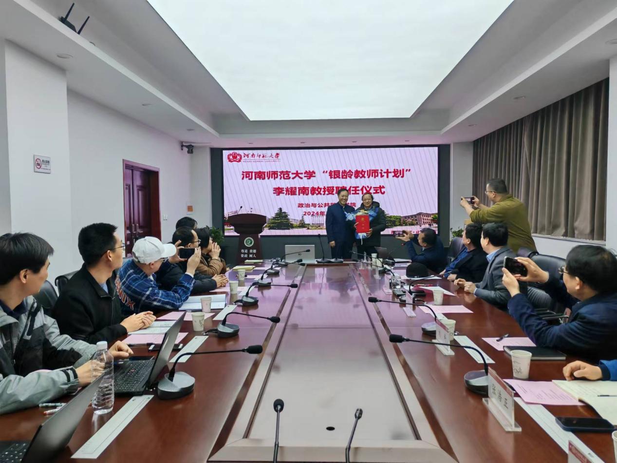 3月21日上午,政治与公共管理学院在517会议室举办“银龄教师计划”李耀南教授聘任仪式。校人力资源部副部长田歧瑞、高层次人才服务办公室主任张浩正、学院党委书记赵红杰、院长李洪河、哲学学科负责人刘科及相关专业师生等出席。聘任仪式由学院副院长韩万渠主持。