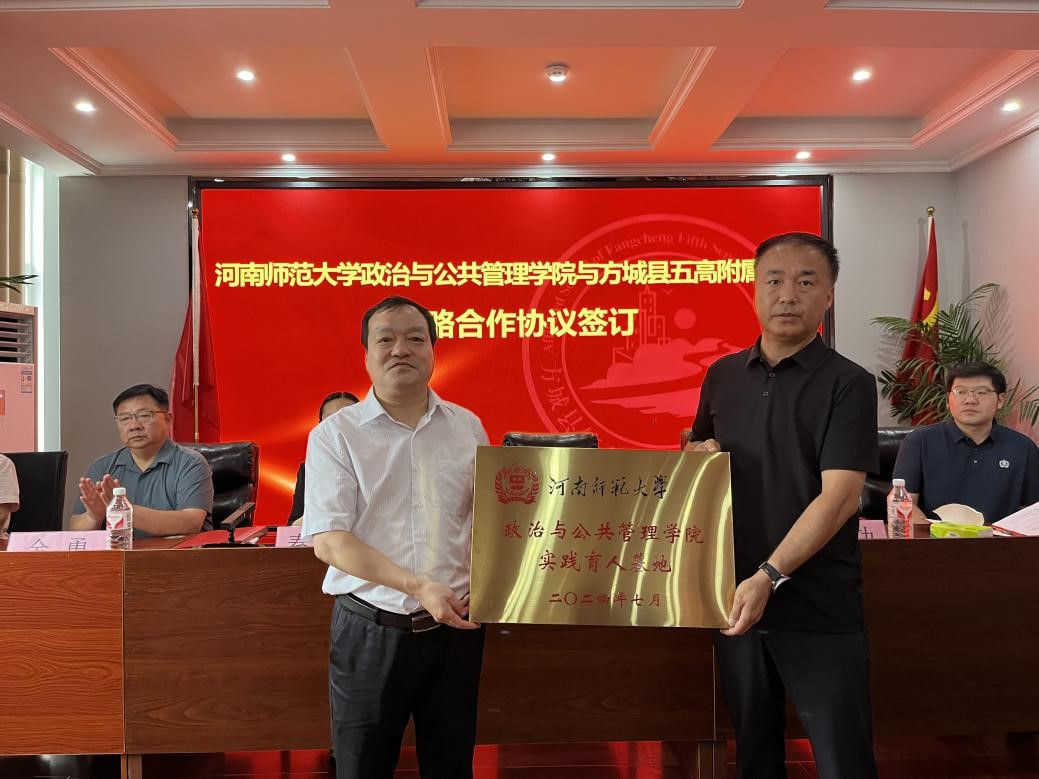 实践育人基地的成立,为学院学生提供了更加广阔的成长成才平台,不仅有利于学院和方城县五高附中建立长期稳定的合作关系,共同探索校地合作新模式,而且有利于实现双方互利共赢、共同发展。未来学院将努力肩负好自身高质量发展与服务基础教育高质量发展的双重任务,进一步推动协同育人桥梁的搭建。