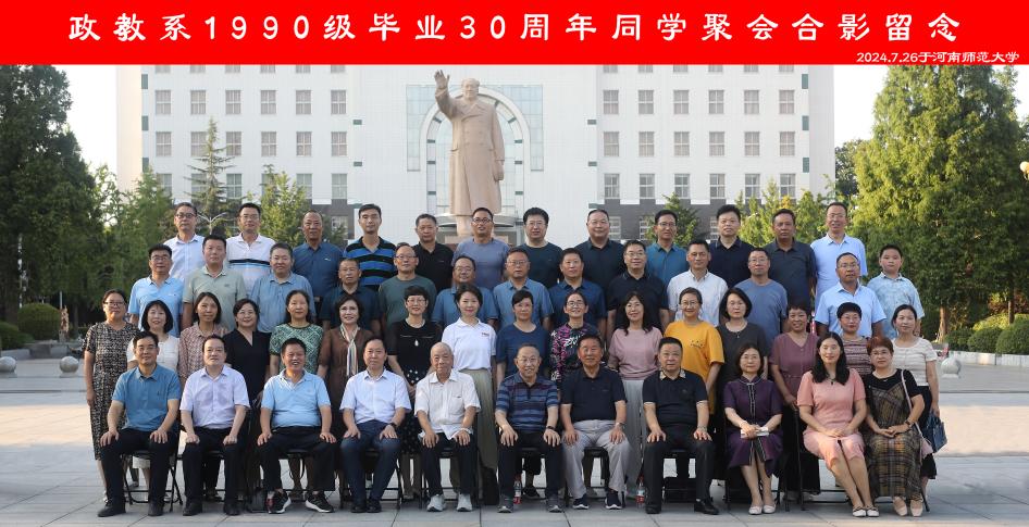 7月26日,政治与公共管理学院1990级50余名校友返校,与学院领导老师举行毕业三十周年师生联谊会。学院党委书记赵红杰,院长李洪河,时任辅导员马玉栋与部分老教师代表出席联谊会。联谊会由该年级在央视工作的杨磊校友主持。