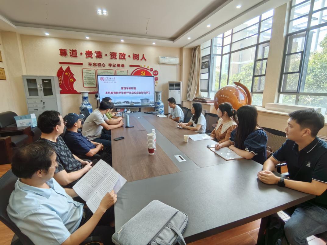 为积极响应学校关于本科教育教学审核评估的工作部署及落实学院第一阶段学习的具体安排,我院管理学教研室于9月5日下午在学院217会议室举行了第二阶段的本科教育教学审核评估应知应会知识专题学习活动,旨在加深教师对新一轮审核评估工作的认识,进一步巩固和深化教育教学理念,为提升教学质量和人才培养水平奠定坚实基础。