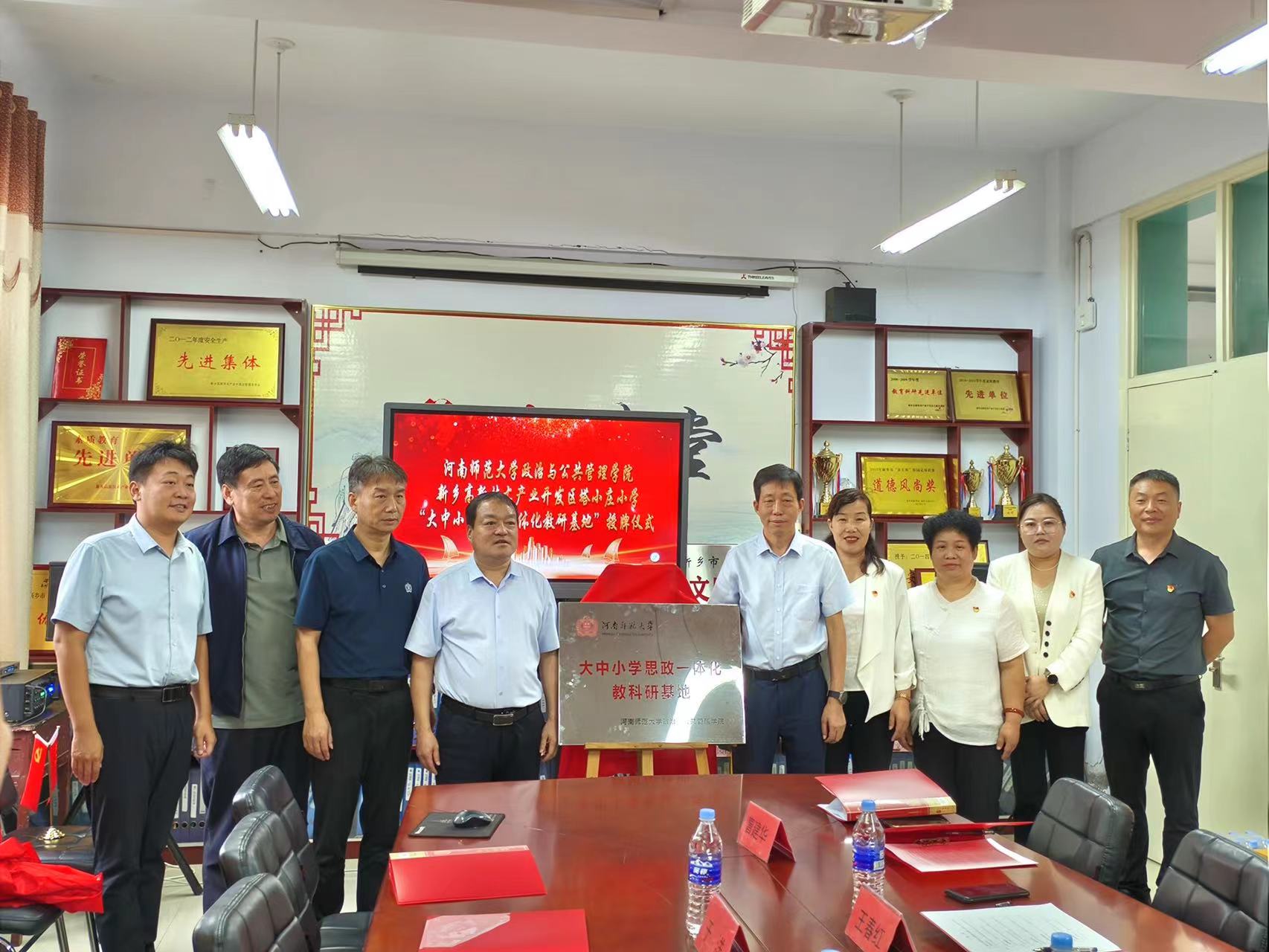 为进一步贯彻落实习近平总书记在全国思政课教师座谈会上的重要讲话精神,完善实践教学模式,提升实践育人的实效性,9月19日上午,伟德官网下载苹果版政治与公共管理学院大中小学思政一体化教科研基地授牌仪式在新乡市和兴小学隆重举行。学院党委书记赵红杰、副院长佘德峰、关堤镇党委书记申岩以及新乡和兴小学部分教师代表、学生代表参加了此次仪式。