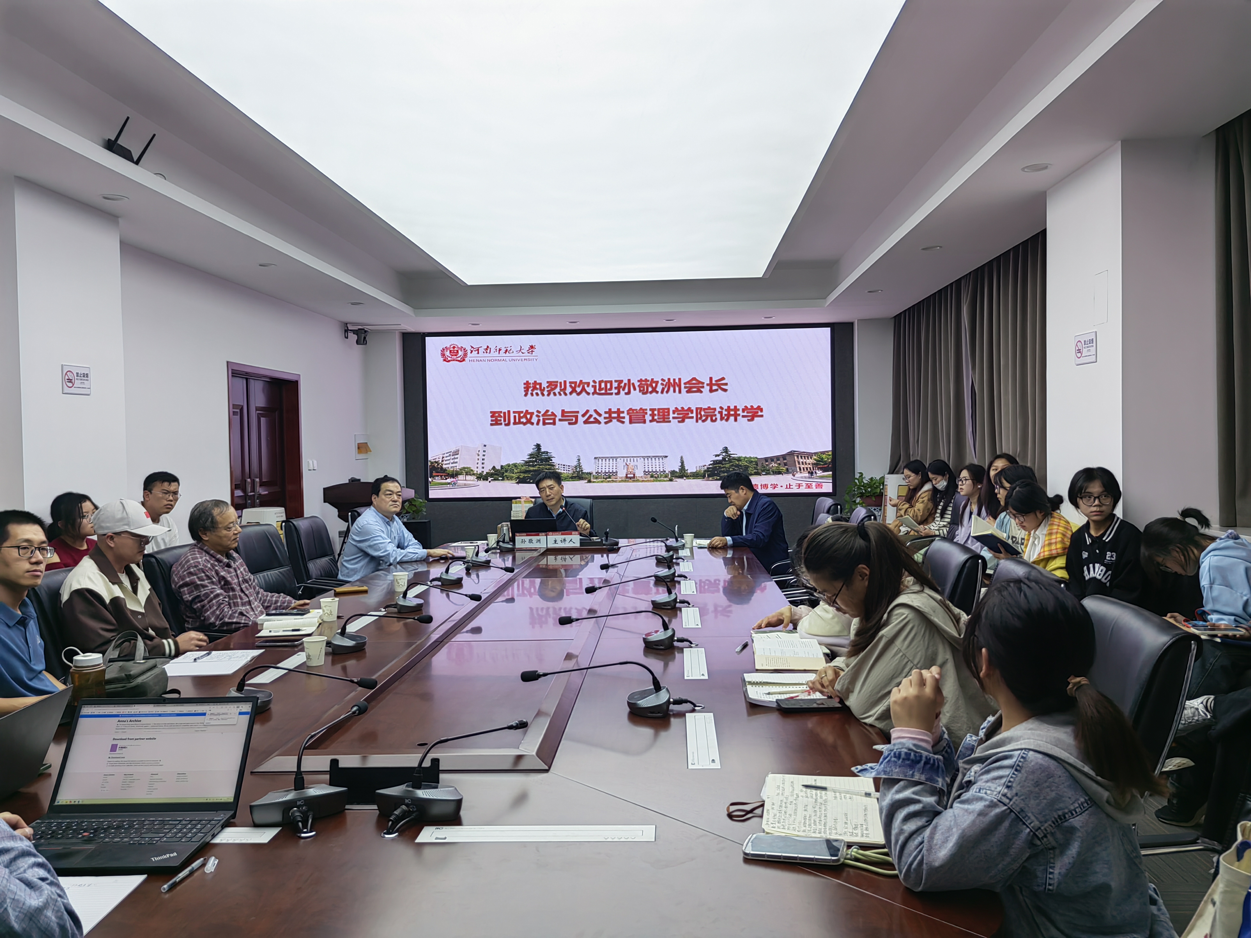 10月17日上午,应政治与公共管理学院邀请,辉县市夏峰学会会长孙敬洲研究员来我院进行考察交流,并在学院517会议室作了题为《北学宗师、清初三大儒之首:孙奇逢》的学术报告。学院相关专业教师、研究生和本科生参与。讲座由张树业教授主持。