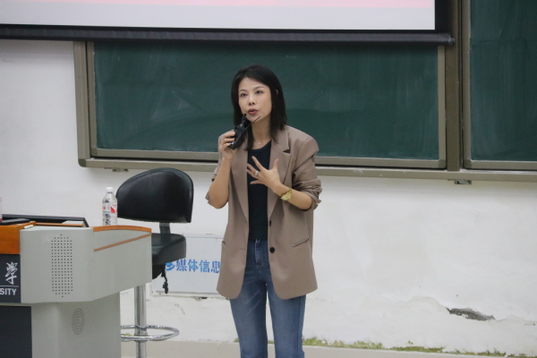 此次讲座以“大学生开拓之旅—以无限可能链接广袤世界”为主题。首先,张瑾对刘影作简要介绍,鼓励学生充分利用此次学习机会,做到学有所得、学有所获。随后,刘影以学生疑问为切入点,就学生最关心的学业、人际关系、人生发展等问题进行讲解。她通过生活实例引出对于“信念感”的介绍,以循循善诱的方式,不断向学生抛出问题,在增强学生参与感的同时也鼓励他们不断增强人生的可能性、不可替代性和确定性,构筑“人生无敌金三角”,在面对各种人生挑战时勇往直前,掌握开启新社交关系的能力。最后,刘影勉励学生永远不要羞于追求优秀的“欲望”,做勇于追求幸福的人。