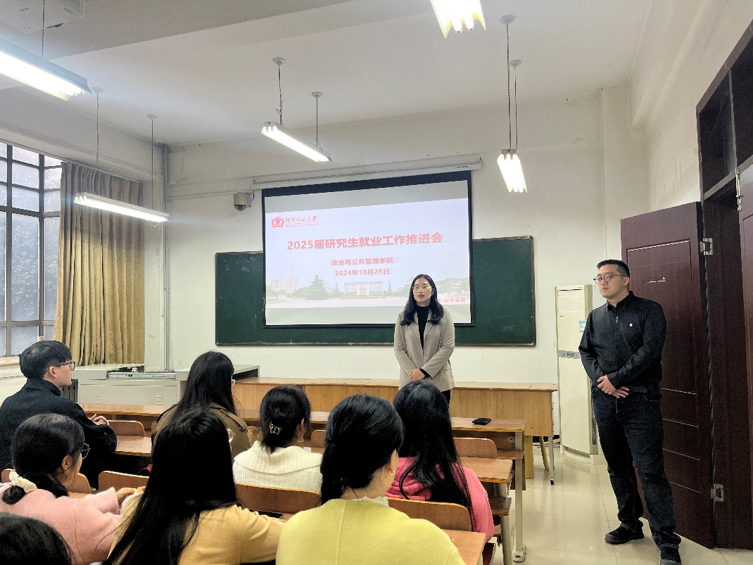 10月26日下午,政治与公共管理学院于学院217会议室召开2025届研究生就业工作推进会。学院党委副书记张瑾、研究生辅导员马文韬,2025届研究生毕业生参加会议。
