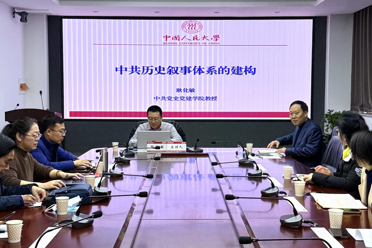 12月3日上午,应政治与公共管理学院邀请,中国人民大学中共党史党建学院耿化敏教授在学院517会议室作了题为《中共历史叙事体系的建构》的学术报告。学院相关专业教师、研究生和本科生参与。讲座由学院院长李洪河教授主持。