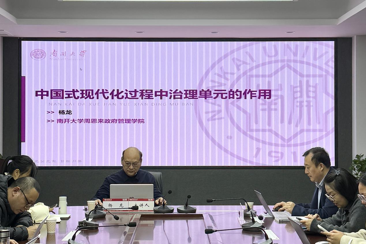 12月4日下午,应政治与公共管理学院邀请,南开大学周恩来政府管理学院杨龙教授在学院517会议室作了题为《中国式现代化过程中治理单元的作用》的学术报告。学院相关专业教师、研究生和本科生参与。讲座由学院副院长韩万渠教授主持。