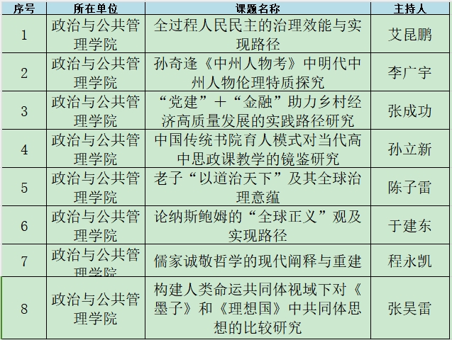日前,经专家评委会评审,我院艾昆鹏、李广宇、张成功、孙立新、陈子雷、于建东、程永凯、张昊雷八人申报的河南省社会科学界联合会调研课题获批立项。
