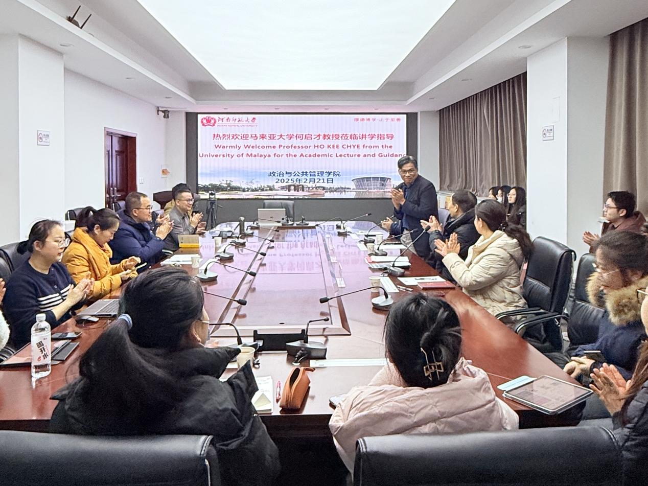 2月21日上午,应政治与公共管理学院邀请,马来亚大学文学暨社会科学院何启才教授为学院师生作了题为《中国商会在马来西亚的在地发展研究》的报告。学院相关专业教师、研究生、本科生等积极参与。本次报告由学院院长李洪河教授主持。
