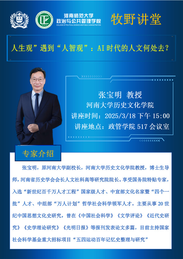 牧野讲堂讲座预告:人生观”遇到“人智观”:AI时代的人文何处去?