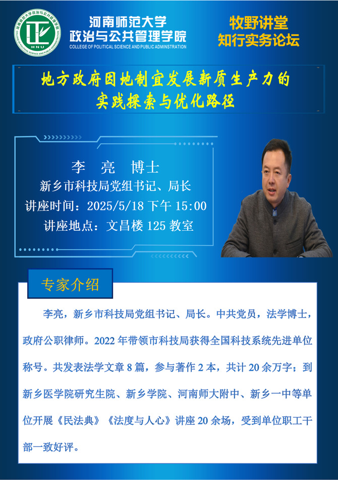 牧野讲堂讲座预告:地方政府因地制宜发展新质生产力的实践探索与优化路径
