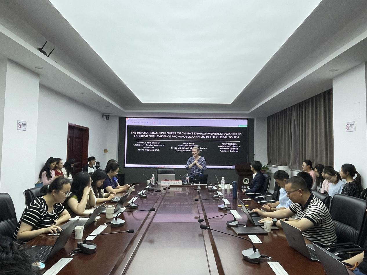 6月3日下午,应政治与公共管理学院邀请,美国阿默斯特学院Kerry Ratigan副教授在517会议室为学院师生作了题为《中国环境管理的声誉溢出效应:来自发展中国家公众舆论的实验证据》的学术报告。学院相关专业教师、研究生参与。讲座由学院席金瑞副教授主持。