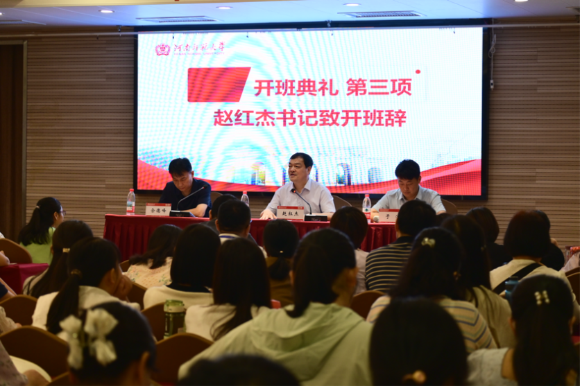 学院党委书记赵红杰在开班仪式上致辞,并热烈欢迎全体参训学员。他指出,政治与公共管理学院在教师教育培训方面底蕴深厚、特色鲜明。本次培训班旨在提升省级骨干教师的政治站位与专业素养,培训导向鲜明、内容贴合实际。他希望老师们不忘立德树人教育初心,牢记民族复兴责任使命,为新时代骨干教师队伍建设贡献力量。教师代表张丽在发言中表示,参训学员将迅速转换角色,以此次培训为契机,夯实学科基本功,提升教育教学能力,认真完成各项学习任务。副院长佘德峰在讲话中指出,希望各位学员珍惜机遇,潜心学习钻研,加强探讨交流,实现共同进步,确保学有所获、能力提升。