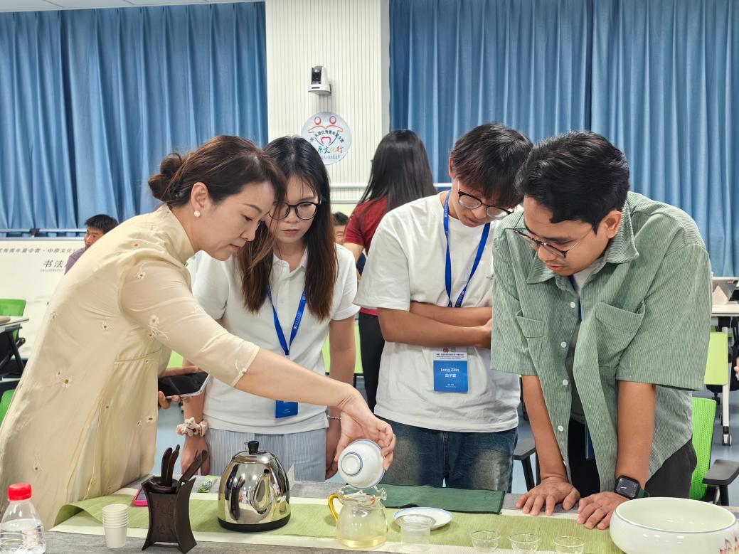 “一带一路,茶和天下。”7月8日下午,旅游学院教师王晶在田家炳楼317室为“中国—东盟优秀青年夏令营·中原文化行”全体营员带来了一场别开生面的茶文化主题讲座,通过沉浸式体验让营员们领略中华茶文化的独特魅力。
