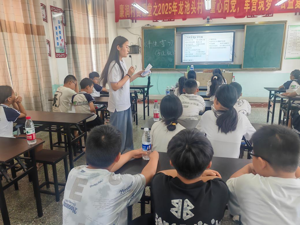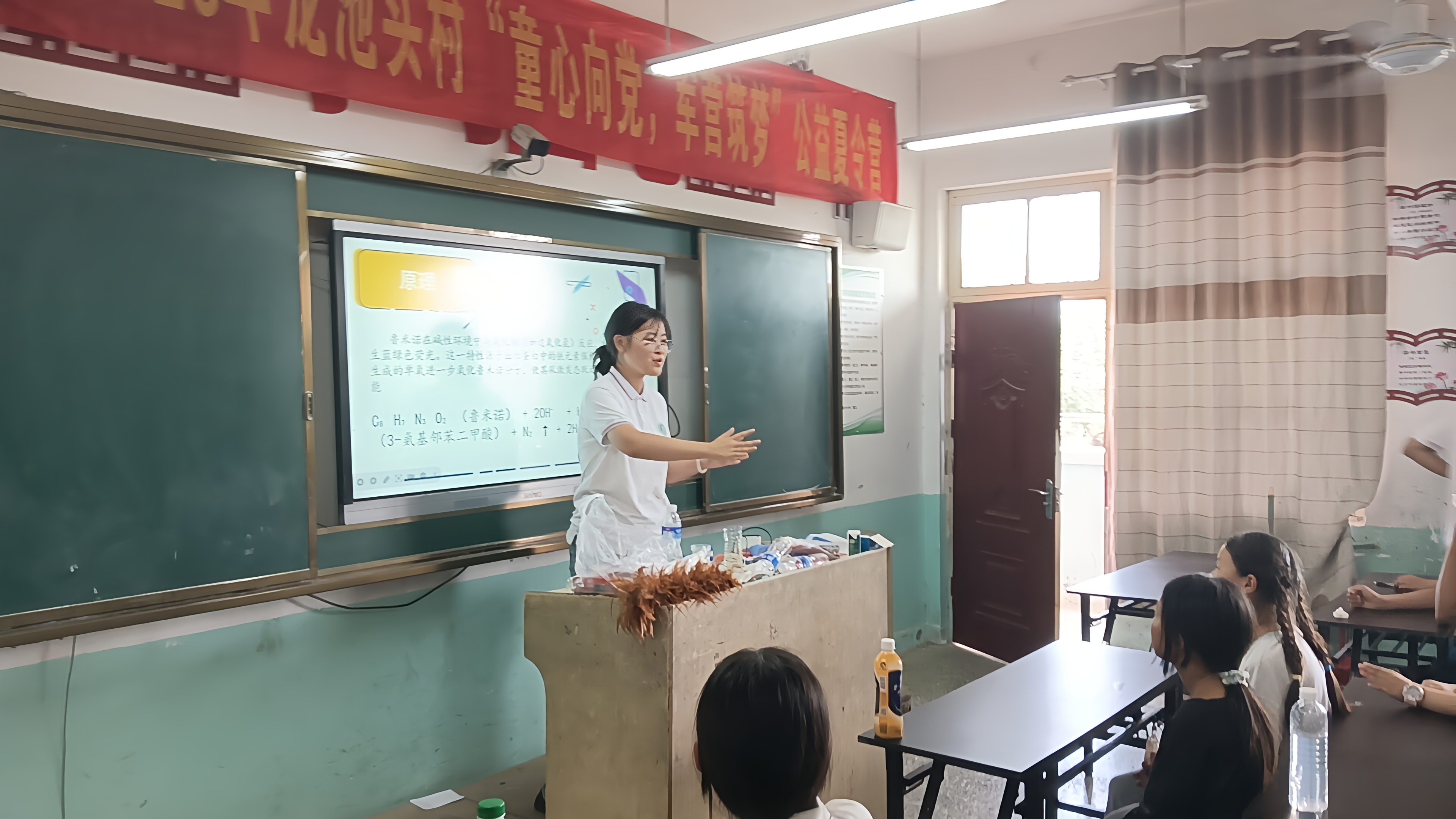 诗歌朗诵课上,实践队员高思凡为学生讲解《少年中国说》。操着一口方言的学生跟着实践队员的标准发音朗读“少年智,则国智”,从起初的怯懦到自信呐喊出“少年强则国强”,每一个学生的脸上都浮现出热爱祖国、建设国家的坚定之情。音乐课上,婉转而富有韵律的节奏响起,实践队员徐祥带领学生一起学习演唱《半生雪(学生版)》。在学习的过程中,她结合历史,用通俗的语言讲解“不惧风雪”“永不悔入华夏”等歌词的涵义,激起学生的家国情怀,让红色基因融入学生心中。在科学课上,实践队员朱瑜菡通过“点水成冰”的实验激发了学生对科学的兴趣。随后,她演示了结晶现象的形成过程。最后的鲁米诺发光实验更是让学生惊叹不已,在他们心中播下了求知的种子。在体育课上,实践队员黄远庆将立定跳远的动作要领——预摆、蹬地、收腹、落地编成口诀向学生讲解,并让学生通过反复练习形成肌肉记忆。在他的指导和纠正下,学生的立定跳远成绩明显提高,脸上都露出了开心的笑容。