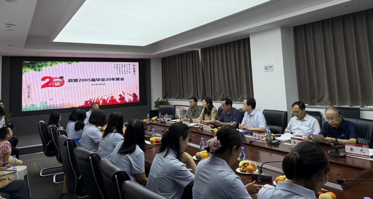 7月26日,政治与公共管理学院2005届30余名校友返校,与学院领导老师举行毕业二十周年师生联谊会。学院党委书记赵红杰,院长李洪河,党委副书记张瑾,2005届辅导员艾昆鹏,部分老教师代表出席联谊会。