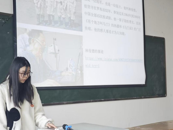 活动伊始,团支部宣传委员衡家伊带领全体团员共同回顾了我国核事业起步的历史背景。随后,同学们通过观看历史影像资料、学习PPT课件,深入了解了马兰基地的创建与发展。活动中,团员们重点学习了张蕴钰、程开甲、林俊德等先辈的感人事迹。在交流分享环节,团员们围绕“马兰精神的时代意义”展开热烈讨论。大家一致认为,马兰精神不仅是“艰苦奋斗、开拓创新、大力协同、无私奉献”的精神凝聚,更是一代代中国人不畏艰难、勇攀高峰的象征。作为新时代青年,要以马兰先辈为榜样,在学习和工作中发扬艰苦奋斗的作风,以攻坚克难的勇气、开拓创新的锐气,勇担时代使命。