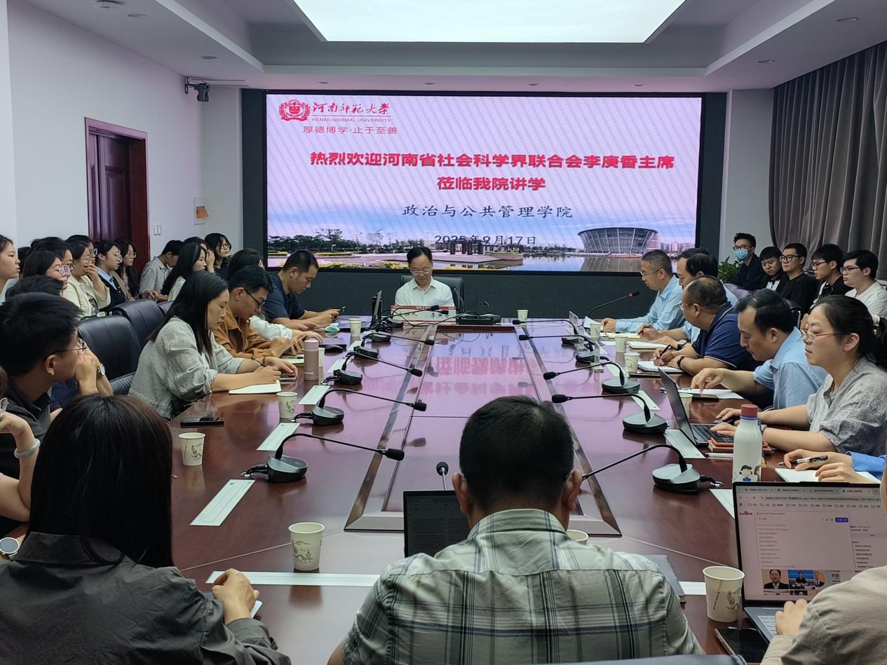 9月17日下午,应政治与公共管理学院邀请,河南省社会科学界联合会李庚香主席在517会议室为学院师生作了题为《走进新时代的中原学——构建新时代中原学的历史使命和实践路径》的学术报告。学院相关专业教师、研究生和本科生参与。讲座由校党委副书记秦法跃主持。