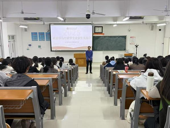 为帮助学生深入了解专业概况,明确发展定位,凝聚专业共识,10月16日晚,学院于文昌楼104室召开2025级政治学与行政学专业见面会。学院院长李洪河,政治学教研室主任张立国,班主任樊浩、杨玉娜以及教师代表陈莉莉、孙科丽、张军龙、吕玉红、韩星耀、尚振扬出席会议,2025级政治学与行政学专业全体学生参加。会议由政治学教研室主任张立国主持。