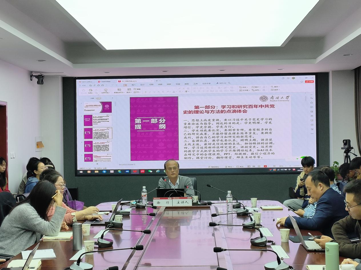 10月18日下午,应政治与公共管理学院邀请,南开大学周恩来政府管理学院徐行教授在517会议室为学院师生作了题为《百年中共党史研究的理论和方法》的学术讲座。学院相关专业教师、研究生和本科生参与。讲座由学院李洪河教授主持。