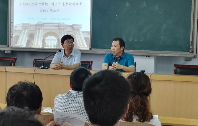 2017年,河南高招政策发生重大变化,本科二批与三批合并,并执行同一个分数线,考生可填报1-9个平行志愿。对考生而言,在扩大可选择学校范围的同时,一定程度上增加了选择难度。对高校而言,既是机遇又是挑战,它在打破既有格局、激发学校创新力的同时,也加大了各院校间的竞争压力。为适应高招政策的新变化,变改革压力为创新动力,争取优质生源,同时服务省内考生报考志愿,我校组织22支宣讲队,从6月9日开始奔赴全省110所省级示范性高中,开展“教授、博士进中学”新高考咨询宣传活动。
