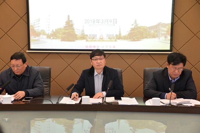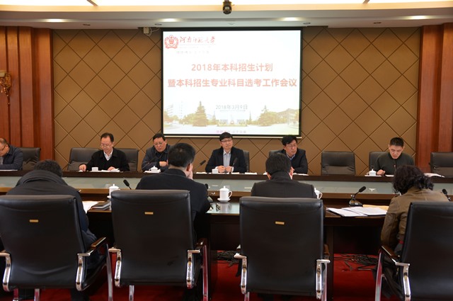 招生办公室主任黄进才就国家新高考综合改革形势和我校招生工作要“稳规模”、“调结构”、“增效益”、“扩宣传”的主导思想向与会代表做了简要介绍,并传达了教育厅转发教育部《普通高校本科招生专业选考科目要求指引(试行)》学习文件。招生办公室副主任瞿洪明就2018年分专业招生计划编报工作和招生专业选考科目设置等问题向各学院作了统一安排和说明。