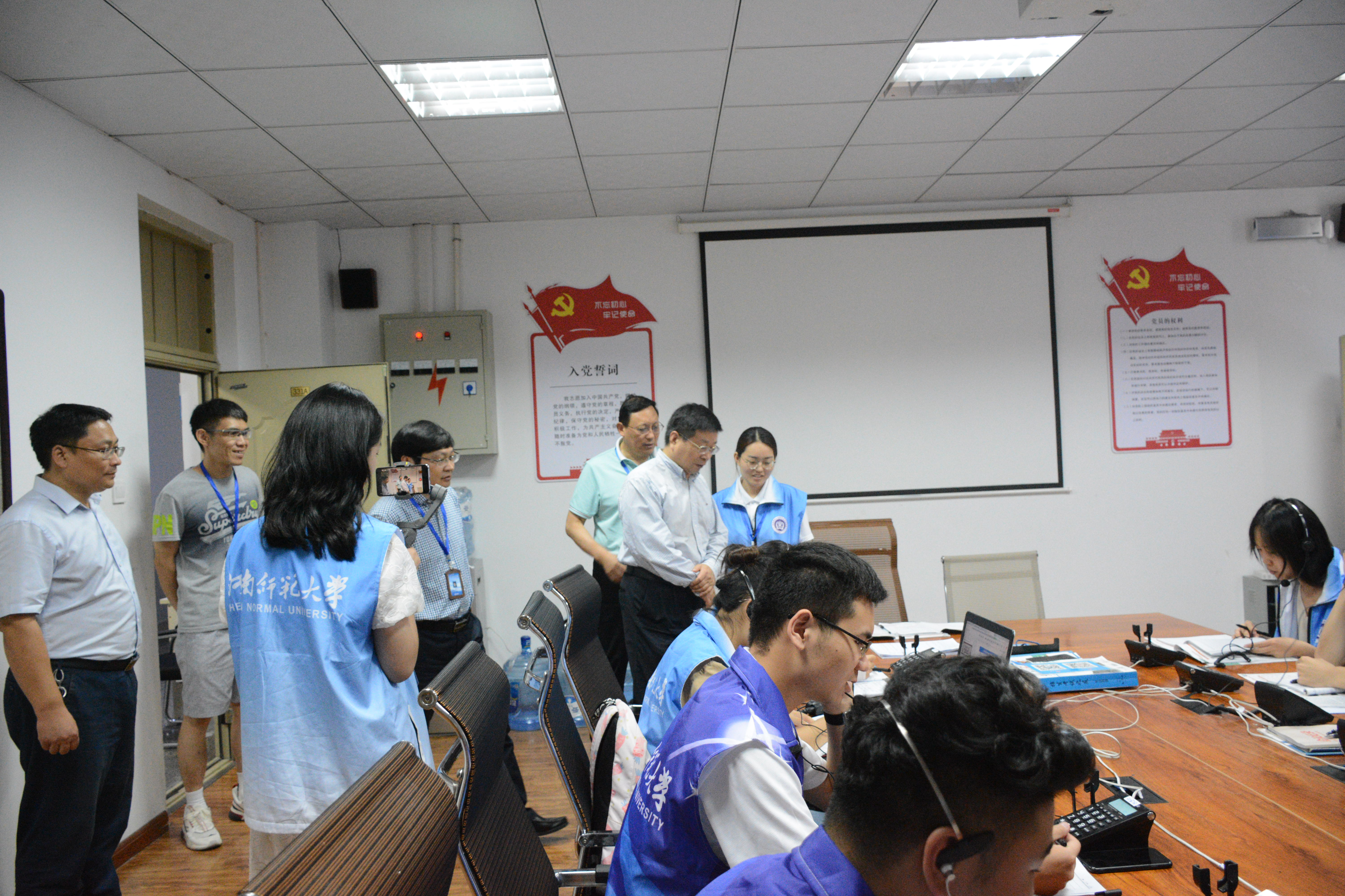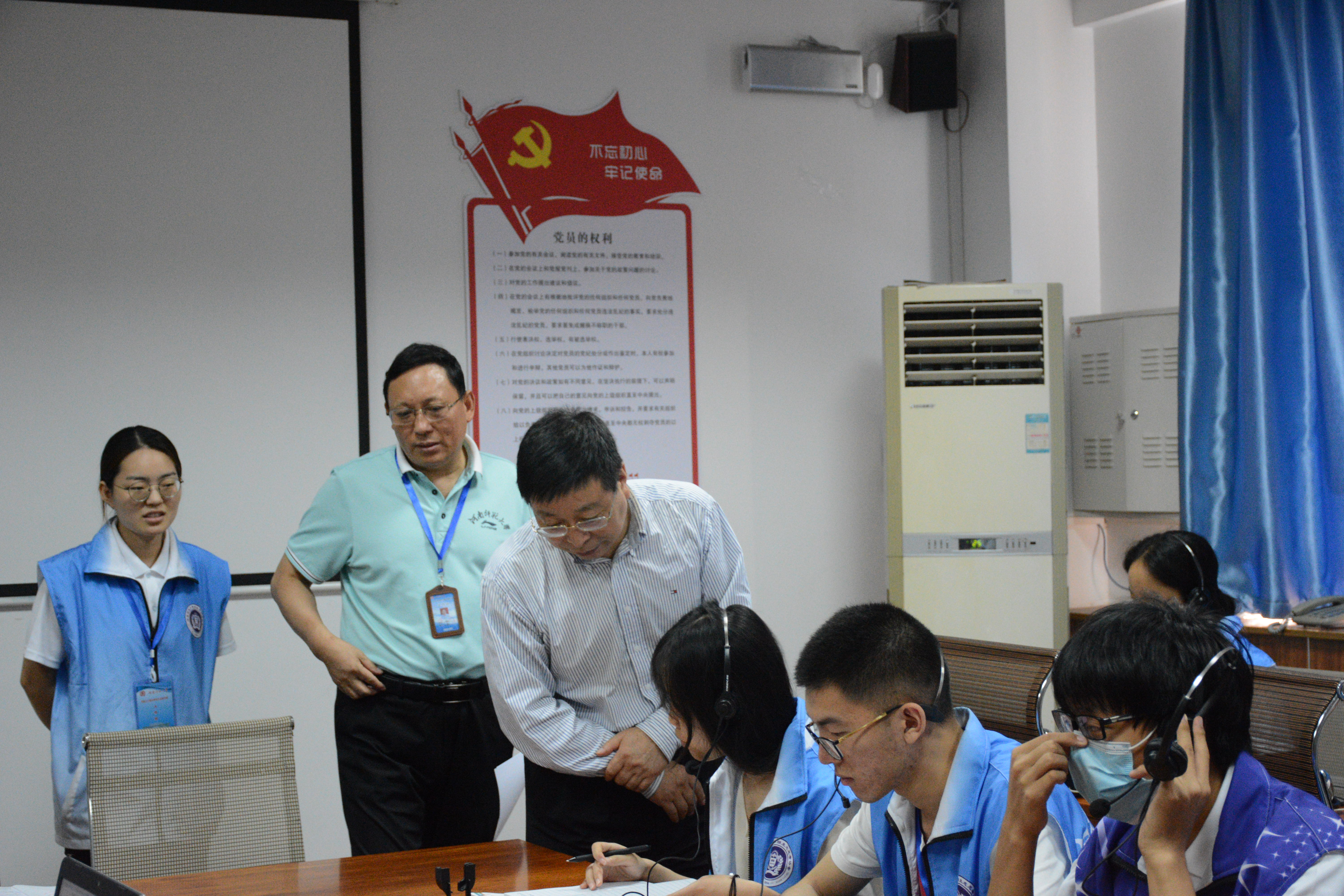 8月18日上午,校长常俊标、副校长李学志在校长办公室负责人陪同下,来到招生录取现场,看望慰问招生录取工作人员,检查指导招生录取工作。