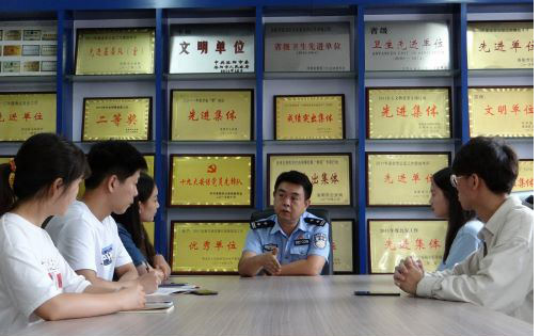 随后,安乐分局主任曹高峰以座谈会的形式接受了实践队员们的采访,他主要从战“疫”经历中的所见、所感以及工作中常见的困难和情绪问题进行阐述。“重任在肩,方显本色;疫情在前,誓不言退”,这是他二十余年的立身之本。面对突如其来的疫情,作为安乐分局的主要负责人之一,他深知自己肩上担子的份量,时刻保持高度的责任感和清醒的头脑,舍小家顾大家,有警必出、有求必应。在这场没有硝烟的战“疫”中,他始终奔赴一线,牢记“疫情就是命令,防控就是责任”的使命,就像一束光,微而不弱,为辖区群众送去温暖。